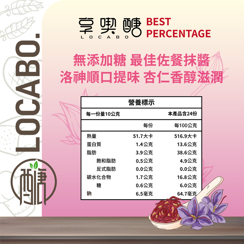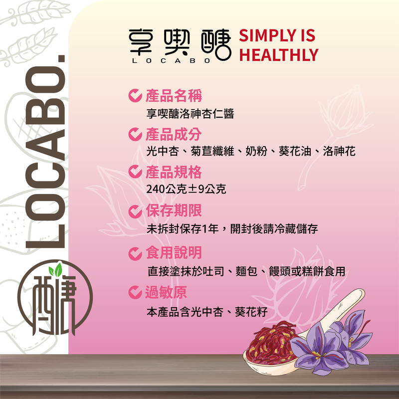 享喫醣【常溫商品】無加糖 洛神杏仁醬