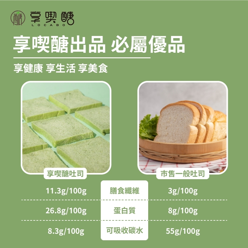 ●營養標示(以1份為單位,一條吐司含10份):熱量132.5大卡,淨碳4.1克,膳食纖維5.7克,蛋白質13.4克,脂肪5.6克