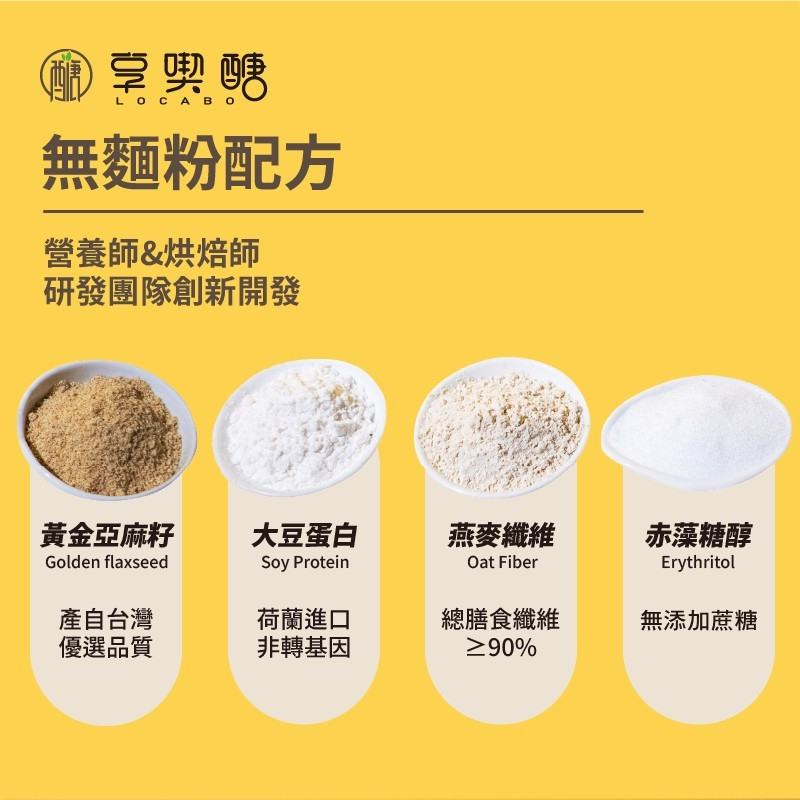 ●原味:大豆蛋白粉、黃金亞麻籽粉、燕麥纖維粉、乳清蛋白粉、赤藻醣醇、水、雞蛋、蜂蜜、鹽