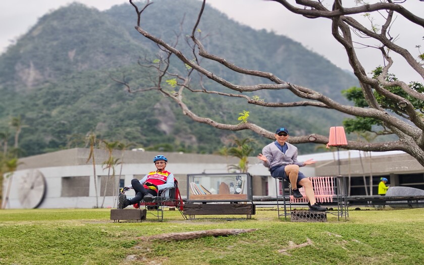 下午,我們直奔小野柳(富岡地質公園),這片海岸因其特殊地形與北海岸野柳相似而得名。幸運的是,今天的導覽由一對特別的夫妻檔—山海戀單車的老朋友陳鏗仁與葉玉梅親自帶領。他們曾是科技業新貴,退休後選擇定居台東,成為深度導覽的志工。他們熱情地為我們解說小野柳的地質奇觀與歷史故事,甚至親自準備了一鍋媲美車城福安宮名產的綠豆蒜,讓我們大快朵頤,深感溫暖與感動。