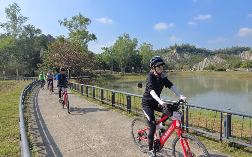 稍作休息後,我們來到田寮月世界地景公園,欣賞這片地理學上稱為「惡地」的特殊景觀。雨水和河流經年累月的侵蝕,塑造出如月球表面的灰白山丘。這片奇異的景致讓人深刻體會大自然的無窮力量。隨後,我們在田寮享用了當地特色土雞料理,為下午的騎行補充能量。