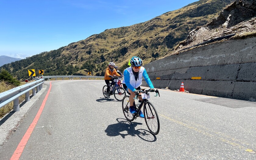 11點半,夥伴們陸續攻頂成功!站在海拔3275公尺的武嶺,天氣晴朗,視野遼闊,遠山層層堆疊,美不勝收。高山風輕拂臉龐,捎來滿滿的成就感。對許多車友來說,這不只是騎行的里程碑,更是一場和自己對話的旅程。就在這片陽光灑落的高地,我們悄悄為今日壽星黃朝松大哥準備了虎皮蛋糕,眾人齊聲高唱生日快樂,笑聲和祝福聲在山巔盤旋,黃大哥感動地說:「這是我此生最難忘的生日!」