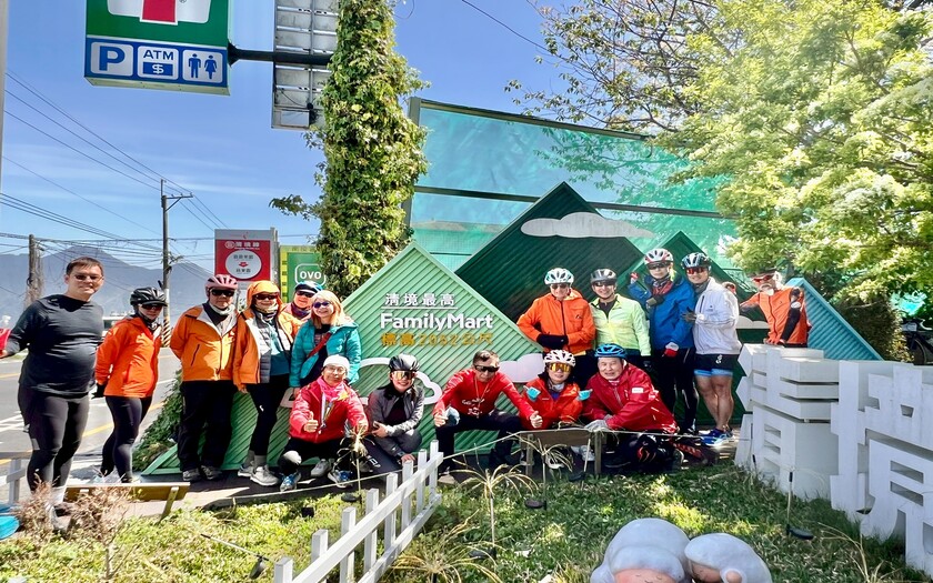 之後繼續下滑,一路俯衝至全台海拔最高的超商—清境雲海全家便利店(2052公尺),這裡不只是便利商店,還有著迷你版青青草原般的造景,歐風小鎮建築映襯著群山,彷彿身處瑞士。午餐、午休時間,車友們或席地而坐、或倚窗賞景,腳下的疲憊早已被山間的美景治癒。