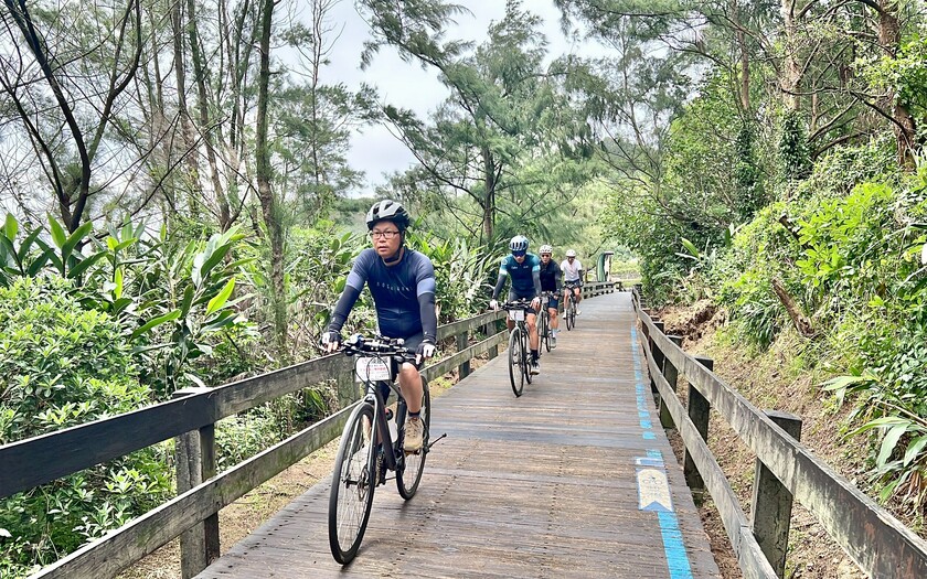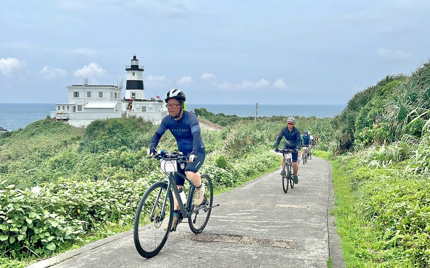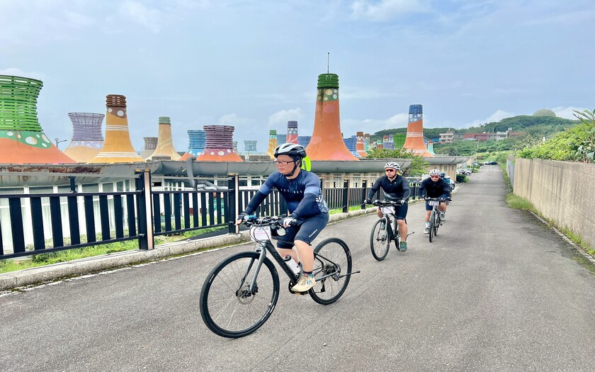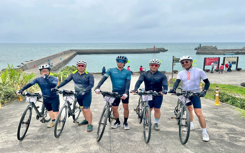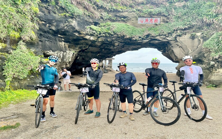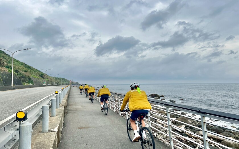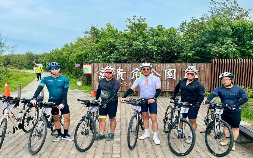 石門婚紗廣場的海景與白欄杆,讓車友們忍不住放慢腳步,拍下幾張浪漫合影。繼續踩入麟山鼻自行車道,海風輕輕拂面,這裡正是電影《不能說的秘密》的拍攝地點,海岸線在腳下蜿蜒展開。
