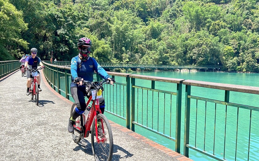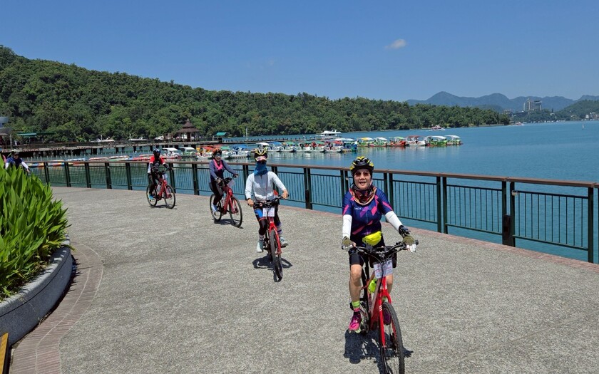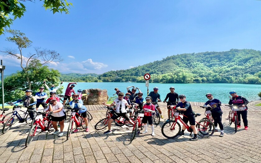 沿著環潭自行車道騎行,湖光山色伴隨左右,景緻宜人。這條路線曾被CNN旗下旅遊生活網站CNNGO評選為「全球十大最美自行車道」之一,讓團員們邊騎邊驚嘆於自然與設計的和諧共融。