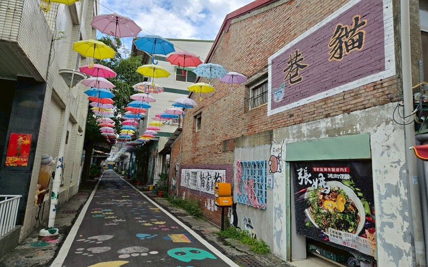午後的路程轉進高雄山區,拜訪「甲仙貓巷彩繪村」,小巷內牆面彩繪著各種萌貓,一隻隻活靈活現地「喵」出甲仙的人情味。