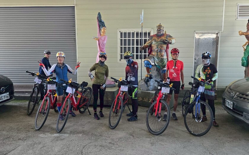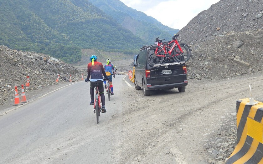 今天,是這趟旅程中「最硬」的一天。總里程107公里、總爬升1613公尺。清晨07:50,我們從嘉義大埔的松竹梅民宿整裝出發,山霧尚未散盡,大家的心情既緊張又興奮。首站是曾文水庫西興觀景台,但一如昨日的阿婆彎與情人公園,仍被圍籬阻隔,無法親近,只能在施工現場草草合影,便繼續前行,轉往13公里外的密枝果農之家作短暫補給休息。