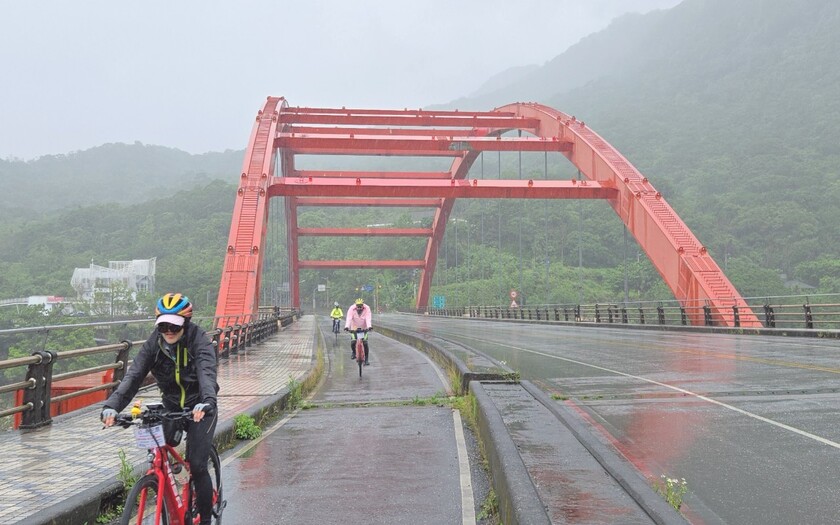 途中一小段細雨陪行,騎過豐濱之後,天氣終於回穩,芭崎眺望台成了我們的最佳觀海點。這裡是台11線最美的轉折角,270度開闊視角讓太平洋與海岸山脈交織成壯麗畫布。一路騎經蕃薯寮峽谷、水璉、新社、鹽寮,再跨越花蓮大橋,來到吉安的天心坊享用熱騰騰的湯包與蒸餃作為午餐補給,團員們也趁機午休、充電。