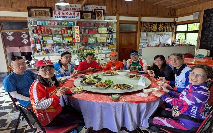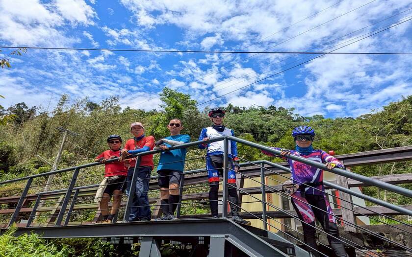 連續兩天午後都遇上雷陣雨,本以為會讓心情受影響,但這群單車勇士卻像早已預知,沒人抱怨,反而自在地在雨中穿梭。有人閒聊、有人賞景,踩踏依舊輕盈,好似老僧入定,將風雨化為旅途中的另一種風景。