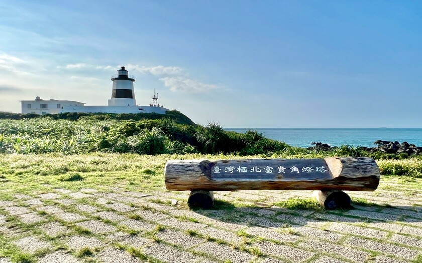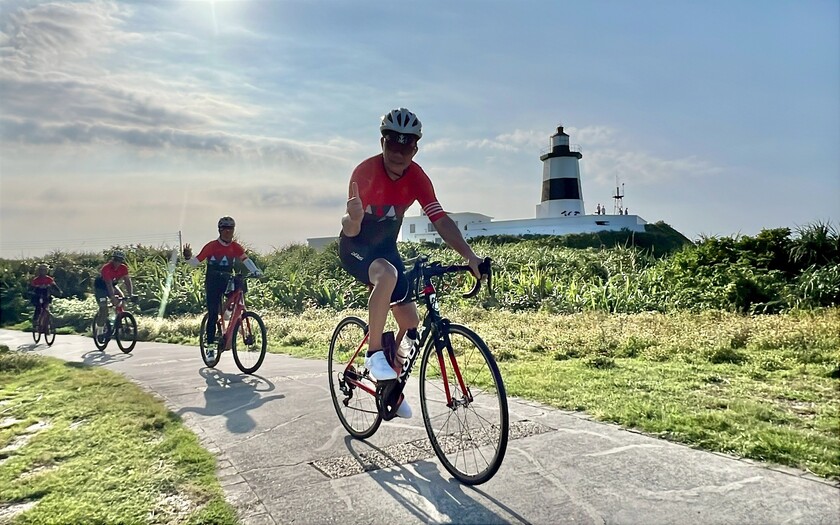 午後,剩餘的 30 公里在微風伴行下順利推進。時間來到 15:45,車隊抵達旅程最終點——台灣極北的富貴角燈塔。這座建於日治時代的黑白相間燈塔,屹立於岬角之上,凝望著東海與台灣海峽的交會,成為單車人心中的地標與榮耀象徵。