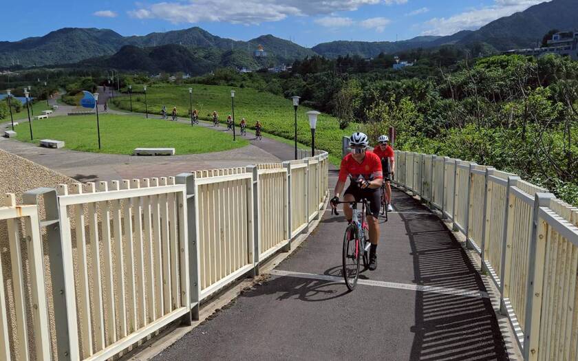 清晨 7:40,車隊自三峽整裝出發。第一站來到大漢溪左岸的新月橋,這裡結合新莊廟街的人文底蘊,設計成兼具休閒與文化特色的廣場。大家在此補給、拍照留影,為最終日的征途揭開序幕。