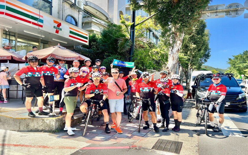一路經台北橋,抵達故宮附近的 7-11 至善天下店。特別的是,社長與陪騎社友早已在此迎接,準備了熱情的茶點。團員們在此共享上午茶,補充能量,氣氛熱絡,為接下來的重大挑戰做好心理與體能準備。
