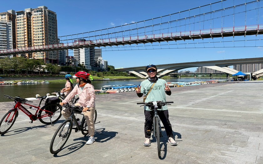 隨後沿著新店溪右岸騎行,來到 馬場町紀念公園。日治時期這裡是「台北練兵場」,供步兵操練與騎兵學習馬術;1930 年代更成為台北南機場,是重要的飛行訓練場地。如今轉型為公園,歷史記憶在綠地與步道間流淌,提醒人們這裡曾經的身影。