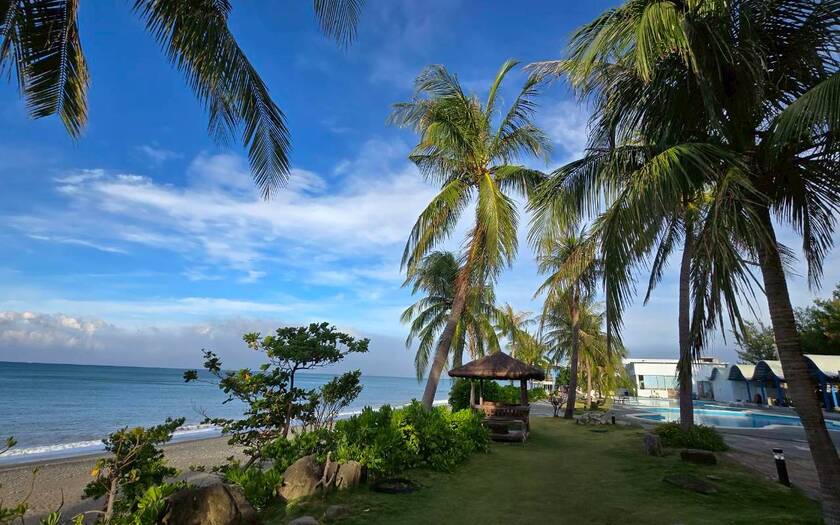 早晨 8:30,車隊自茉莉灣海景渡假酒店整裝出發。南國陽光從雲層縫隙灑下,映照在車身的反光貼紙上,閃爍著出發的節奏。微鹹的海風混著棕櫚香氣,伴隨海浪拍岸的聲音,宣告著第二天征途的開始。