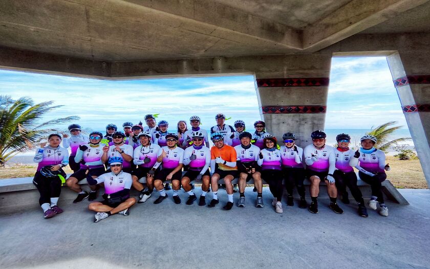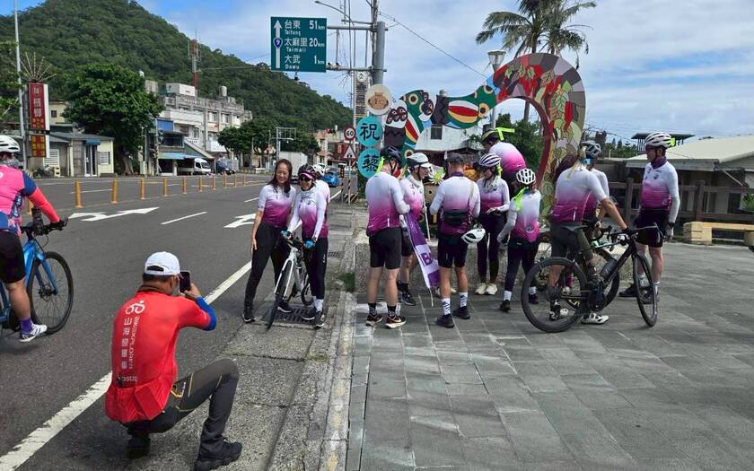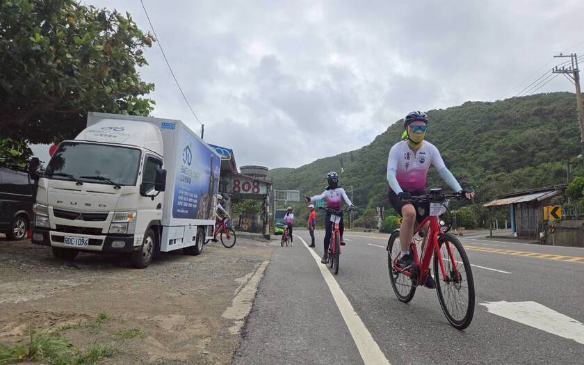 10:20,全員順利登上壽卡。這裡是屏東與台東的分界,更是南迴公路的制高點。迎面吹來的風裡,夾雜著一絲成就的喜悅。清大陪騎團與環島主團在此重逢,彼此擊掌、合影留念,笑聲回蕩山谷。