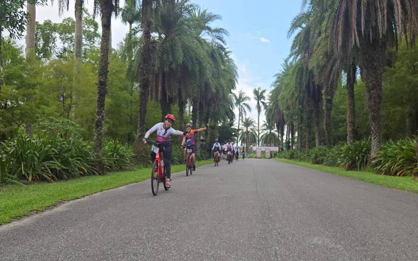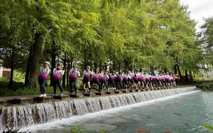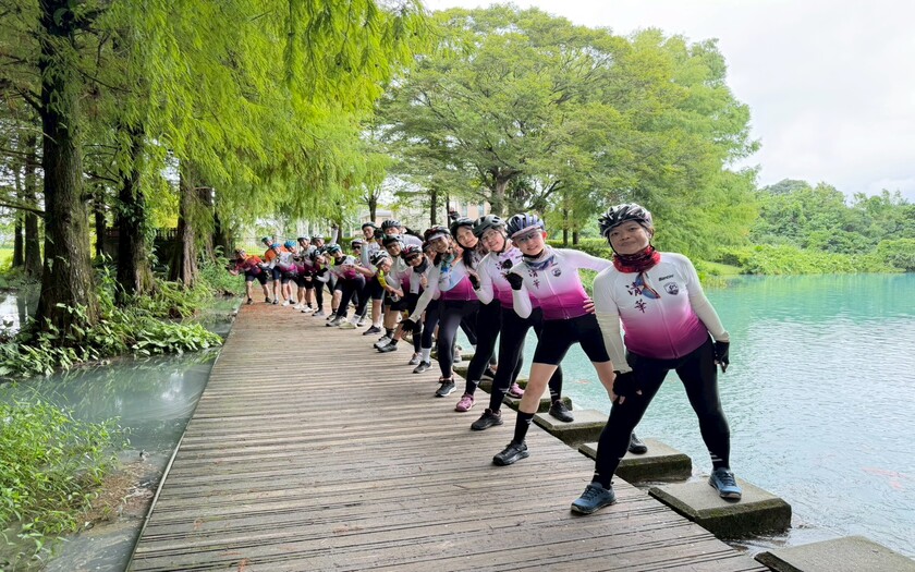 不久,車隊加碼前往壽豐鄉著名的「雲山水夢幻湖」。湖面映著藍天與遠山,倒影如畫。這片位於縱谷中央的私人園區,佔地約24公頃,湖泊面積約4公頃,原為人工開鑿。靜謐水面間,人人駐足,讚嘆自然與人文的巧妙共生。這一刻,大家深刻體會單車旅遊的意義——不只是里程,更是與土地的連結。