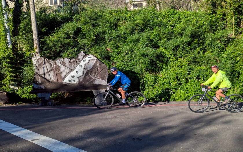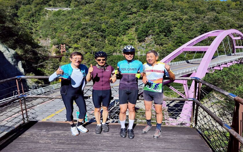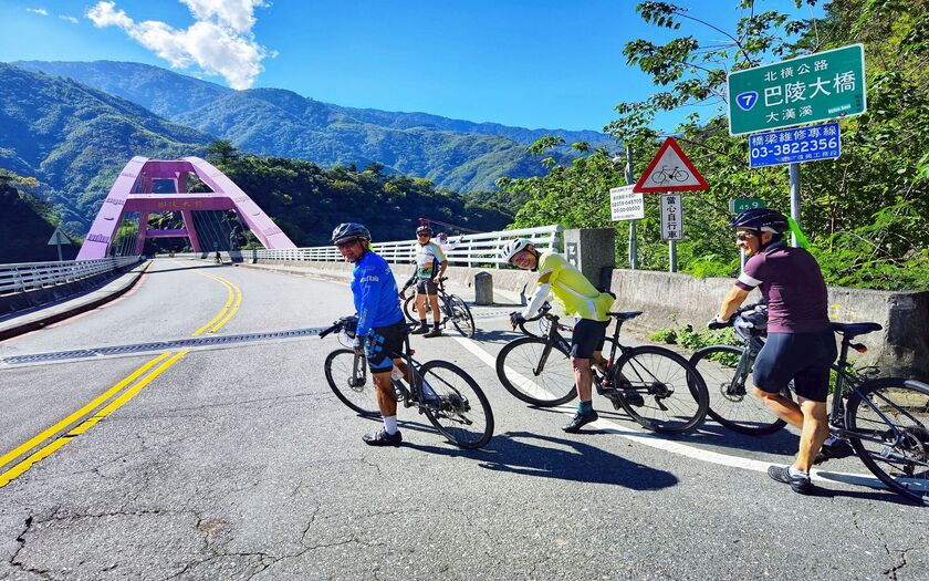 早上 7:30,車隊從 藍、紅雙色的復興雙橋 出發。復興橋前身為「拉號吊橋」,拉號在泰雅族語意為「橫跨」,象徵著族人生活的連結,也象徵著我們今日即將踏上的第二段山脈旅程。涼爽的山風、整齊排列的單車——第二天的挑戰,正要開始。