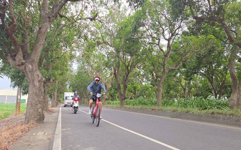 最後一段行程,是所有人最期待的「太康綠色隧道」。770 棵巨大芒果樹像兩排溫柔的守護者,枝葉彼此交握,形成天然走廊。陽光從葉隙灑下斑斕光影,腳下路面被光點鋪成星河。風在樹梢上流動,車輪在綠蔭下輕聲滑行——這段路像是為旅程量身打造的收尾詩篇。