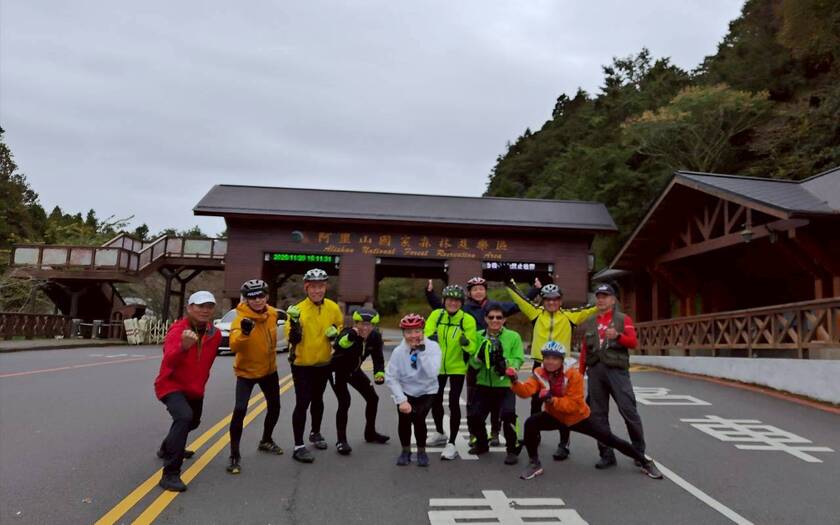 中午抵達塔塔加停車場享用午餐,飯後還有短暫時間欣賞《雲海上的島嶼》與齊柏林的《看見台灣》,與眼前的群山形成最真實的呼應。午後溫度約 11 度,大家重新穿好保暖衣物,往鹿林神木騎去;那棵巨木依舊沉穩挺立,像是另一位沉默的守護者。