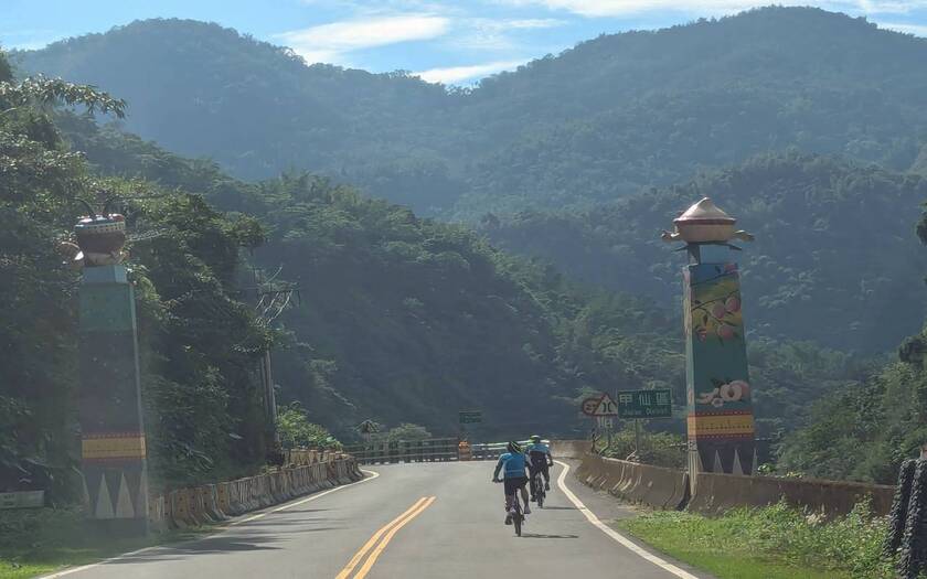 7:50 從飯店出發,迎來 17 公里的下滑段。空氣微涼,陽光落在濃密山林間,像是替長途挑戰開了一道柔和的序幕。今日的目的地在高雄旗山——從嘉義騎到高雄的概念,但路線卻深藏在山區之心,壯闊也艱辛。