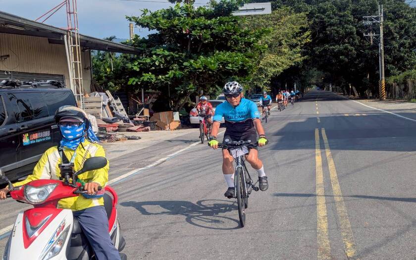 刻意安排車隊騎入這條 1.2 公里、由 500 株小葉欖仁構成的綠色隧道。光影與綠葉交織,芬多精迎面而來;夏秋時節最宜人,曬不到太陽,是連日來「最舒服的一段路」。離開部落後,騎經寬闊到「不像話」的飛機戰備跑道,一望無際的視野令人忍不住加快節奏。途中在南州稍作補給,再於 7-Eleven 枋寮維軒店集結,確認全員狀態。今天雖行程長,但坡度舒適、休息點精準,車隊狀態輕盈愉快。