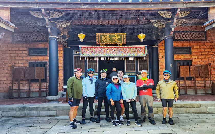 午餐後前往國定古蹟 李騰芳古厝。步入古宅,仿彿聽見百年前的家族故事在廊間回響;風水、格局、雕飾無不展現漢人深耕大溪的印記。離開古厝後,車隊騎進 月眉單車步道,落羽松映著冬陽,光影斑斕成畫。