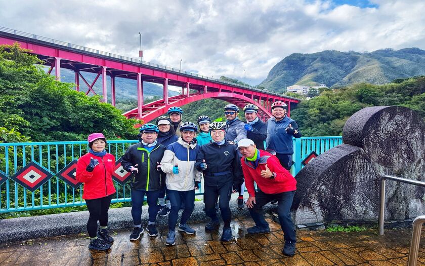一路滑向 羅馬公路口合影。這條由「羅浮」與「馬武督」組成的山路,是北部車友心中經典中的經典。轉上羅馬公路後,山線開闊、路況優雅,天氣極好,每一次抬頭都能看見不同角度的 石門水庫湖光漾色。