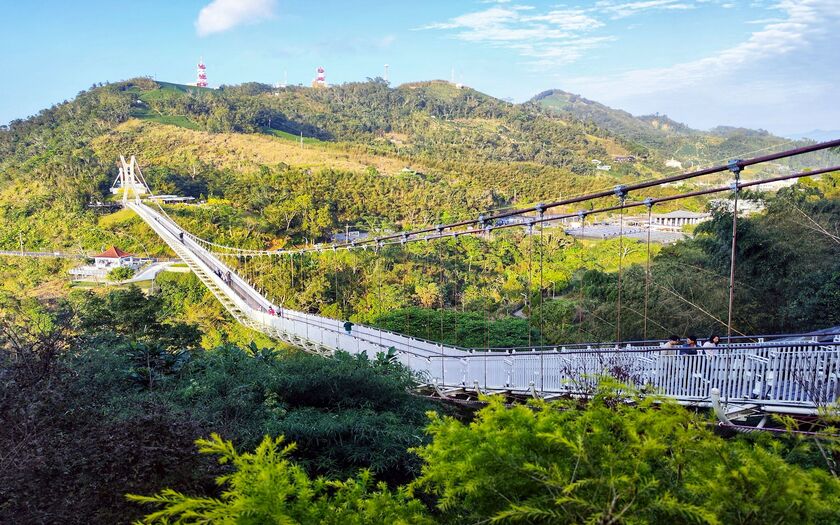 隨後搭車前往 太平雲梯。全長 281 公尺、海拔約 1000 公尺,是全台海拔最高的景觀吊橋。站在橋上,嘉義平原、山谷瀑布與流動雲海一覽無遺,視野被拉得很遠,心也跟著靜了下來。