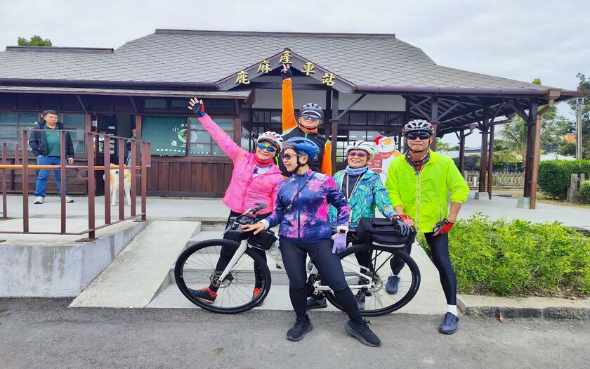 離開北門,車隊沿著阿里山林鐵平地段前行,抵達 鹿麻產車站(鹿滿)。這裡曾是北門與竹崎之間的重要節點,兩股線配置,承載過林業最繁忙的年代。如今鐵道少了喧囂,卻多了故事,正適合這樣一支慢慢騎、慢慢看的隊伍。