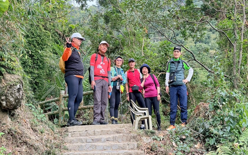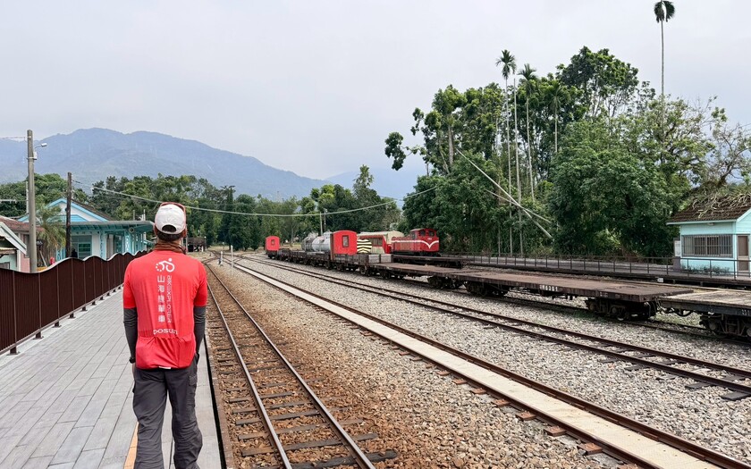 約下午 1 點抵達 樟腦寮車站。這座折返式車站以 × 形軌道設計聞名,火車後退進站、再垂直爬升,完整展現「螺旋式」工程工法,是林鐵繞行獨立山三圈的經典路段。在此收車後,隊伍改以雙腳踏上 獨立山步道。獨立山步道依山勢自然鋪設,是全台少見與鐵道並行的登山路線。行走其間,火車、隧道、鐵軌與山嵐不時交錯出現,清霧忽左忽右,讓人一再停下腳步。這段路,不快,卻讓人走得心甘情願——因為知道,這正是加碼旅程最珍貴的部分。