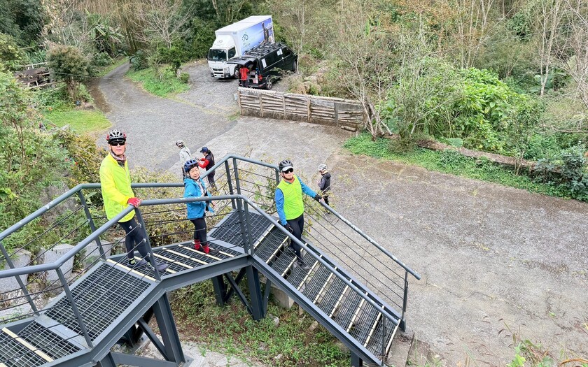 中午於 瑞里茶壺餐廳 用餐,山產料理與熱茶上桌,大家在窗邊稍作休息,交換剛剛拍下的雲霧與瀑布畫面。這樣的午餐時光,總能把團隊的距離再拉近一些。下午 1:10 離開餐廳,前往 瑞太古道,走一小段竹林階梯。竹影隨風擺動,腳步聲在林間顯得格外清晰。順著階梯登上 上川觀景台,山谷層層展開,視野開闊,讓人再次感受到阿里山「越走越深、也越走越靜」的魅力。