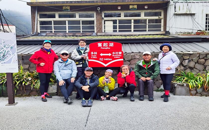 約 3:30 抵達飯店入住,稍作整理後,再次集合前往 奮起湖車站。這裡是阿里山林業鐵路本線最大的中途站,海拔 1403 公尺,也是沿線唯一擁有雙月台的大站。黃昏時分,車站少了白天的遊人喧鬧,只留下鐵軌、月台與山城的靜默,為第二天畫下沉穩的句點。
