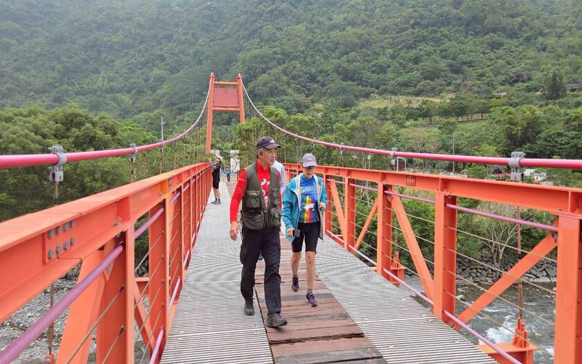 下滑至金崙時,遠方山頭烏雲密布,領隊果斷決定先入住 金崙城堡溫泉會館,再以接駁方式完成未竟的 10 公里行程。隨後參訪 壢坵小米學堂,由廢棄小學轉化而成的部落活化空間,兼具展售與文化展示功能,完整呈現小米與排灣族生活文化;再到 魯拉克斯吊橋 跳拍、留影,為今日畫面留下輕快的記號。