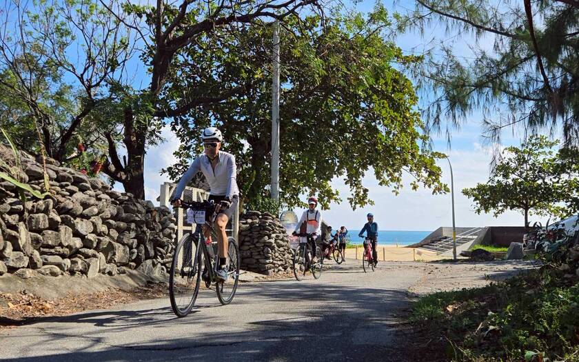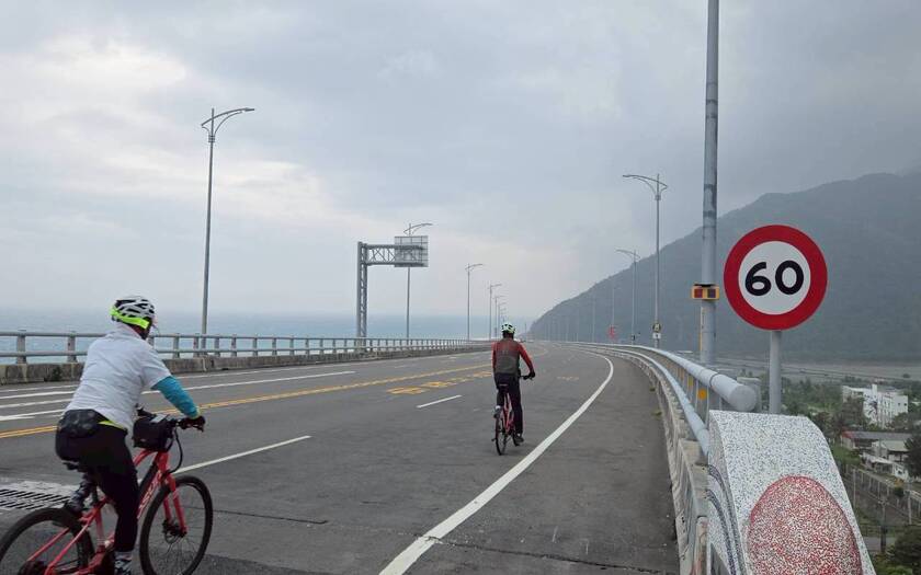 14:00 結束部落行程,起風的午後,我們沿著太平洋海岸南下。接下來的 華園坡 與 金崙坡,是北往南騎最讓人印象深刻的挑戰:坡短卻陡。電輔車在電力加持下穩定前行,一般車只能靠體力與毅力硬撐,看著電輔車越來越遠,除了苦笑,只能咬牙往上。但沒有人放棄,這正是單車最迷人的地方。
