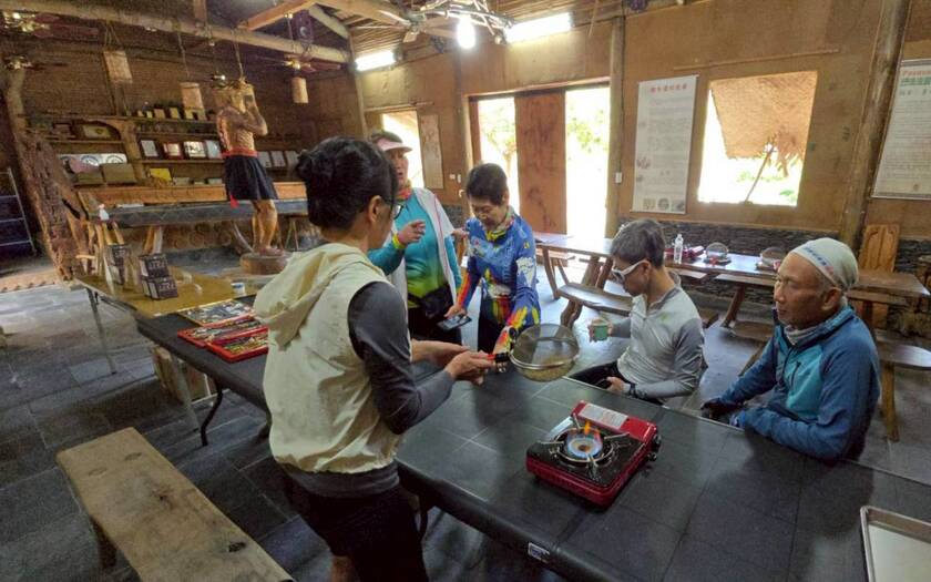 今日的重頭戲在此展開。由當地 丁先生 導覽,帶領我們認識部落 8 位頭目的住家,從 1950 年開拓者進駐說起,到來自南大武、北大武與屏東來義鄉的族人陸續聚集,才形塑出今日的撒布優部落。接著回到部落展售中心,親手體驗咖啡烘豆,從輕焙、中深焙到超深焙,三種焙度依序完成。大家將咖啡豆分裝、註明日期,約定 12 天後沖泡品嚐、分享心得——這不只是一杯咖啡,而是一段被時間延續的旅程。