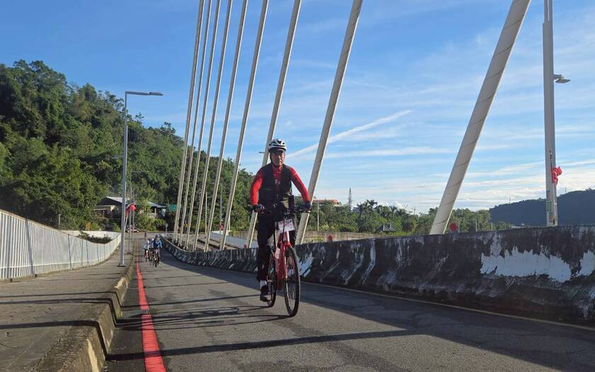 騎經知本溫泉區、跨過勇男橋後,進入 知本國家森林遊樂區。這裡宛如一座開放式的生態教室,林蔭步道間芬多精濃郁,鳥鳴蟲聲交織,是最自然的療癒。園區裡有頗具挑戰的好漢坡,也有柔美的百草花園,途中還幸運地看見 2+1 隻山羌,原本以為是小鹿,靈動又可愛,為這趟森林之行添上驚喜。