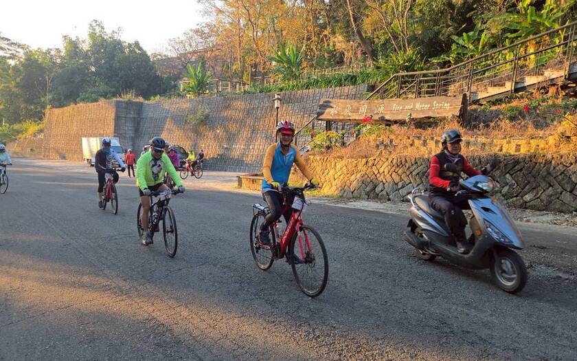 17:10,平安抵達關仔嶺富野溫泉會館。夜晚,在飯店附近享用甕缸雞料理—據說關仔嶺正是這道料理的發源地,光想已飢腸轆轆。溫泉熱氣、山城夜色與滿桌在地風味交織,為這一天從鹽鄉走向山城的騎行旅程,畫下溫暖而踏實的句點。