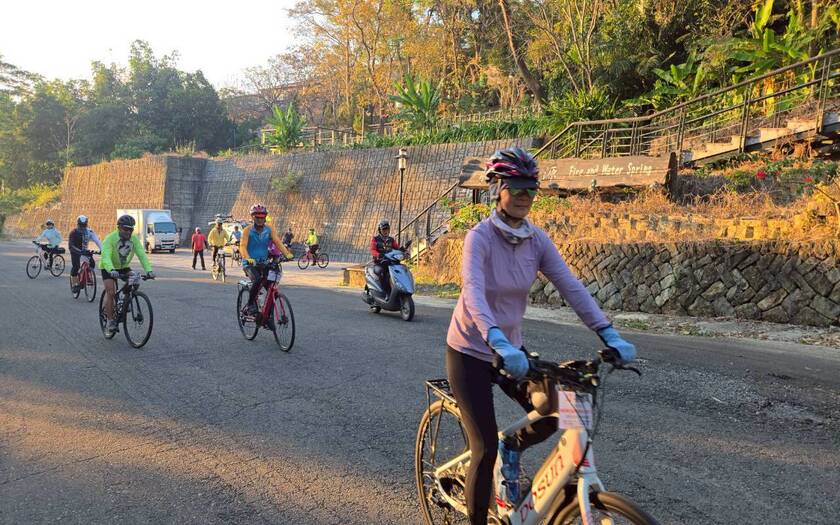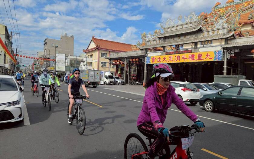 清晨離開七股,09:20 準時整裝出發。今天的路線,從濱海鹽鄉一路騎向山城關仔嶺,節奏依舊不趕路,重點放在沿途的信仰、人文與產業風景。車輪轉動之間,風景也從平原逐漸轉為起伏,為今日的騎行定下層次分明的基調。