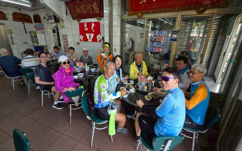離開西港後,隊伍轉往麻豆,享用在地知名的早午餐—阿蘭碗粿。簡單卻熟悉的滋味,成為今日重要的能量補給。餐後續騎經總爺藝文中心,這裡原為日本明治製糖株式會社於 1912 年營運的總爺工廠與本社,如今轉化為文化場域,靜靜見證糖業曾經撐起地方經濟的年代。