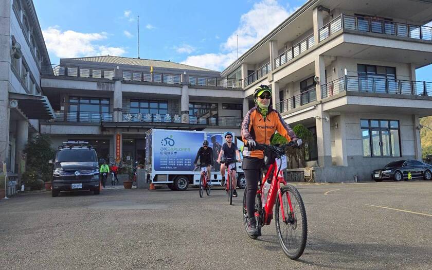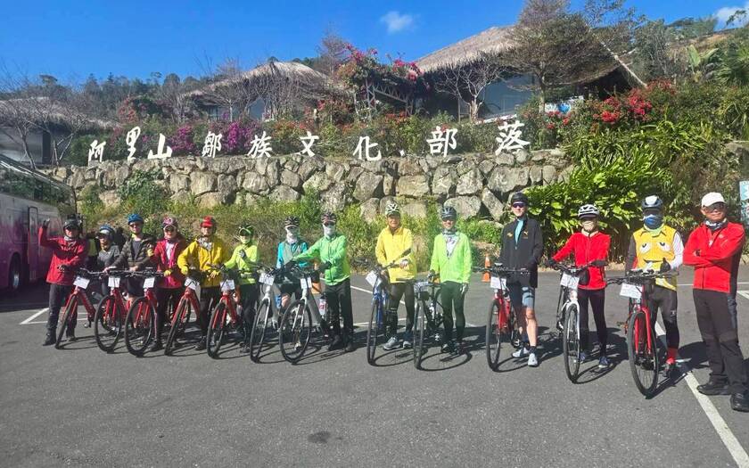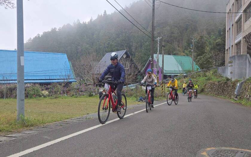 隨後,沿著林間雅徑騎進得恩亞納合掌村。進入社區彷彿走進童話場景,斜屋頂的合掌式建築錯落排列,被稱為「小瑞士」。這裡是鄒族部落,於八八風災後重新改建,每戶門牌皆由住戶自行設計,展現濃厚的藝文氣息。