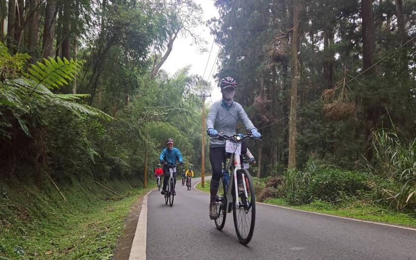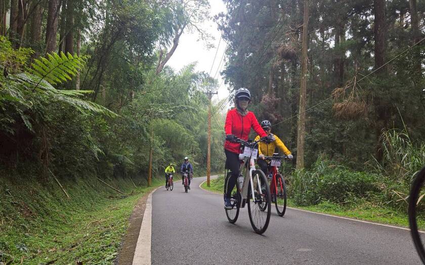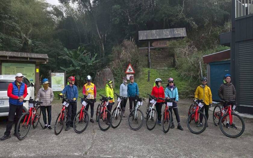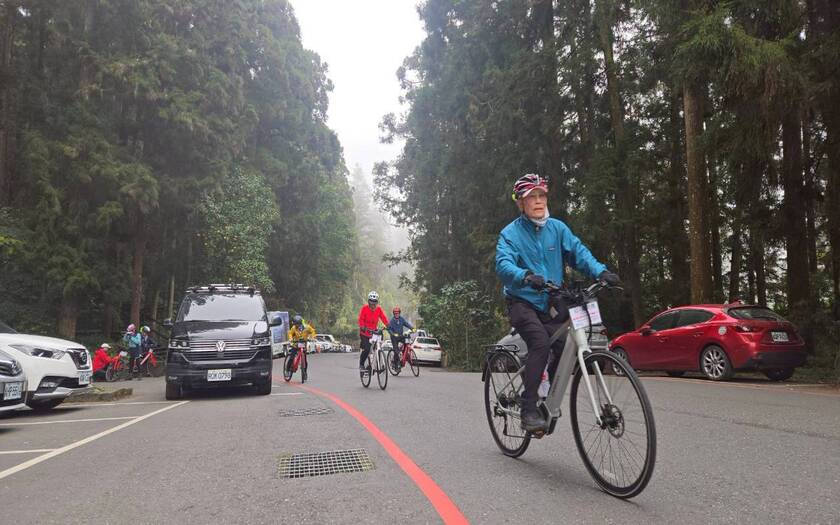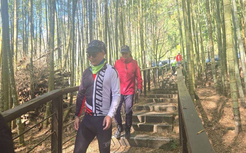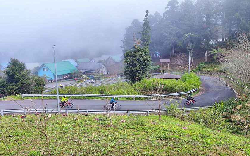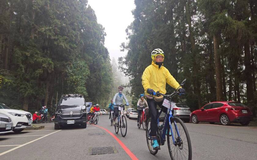 離開奮起湖後,騎經大凍山步道口。大凍山又名糞箕山、畚箕山,海拔 1,976 公尺,是台灣小百岳之一,同時也是林務局規劃的國家森林步道。沿途林相優美,杉林與竹林交錯,即便在寒流中騎行,仍能感受這條山線一貫的舒適節奏。