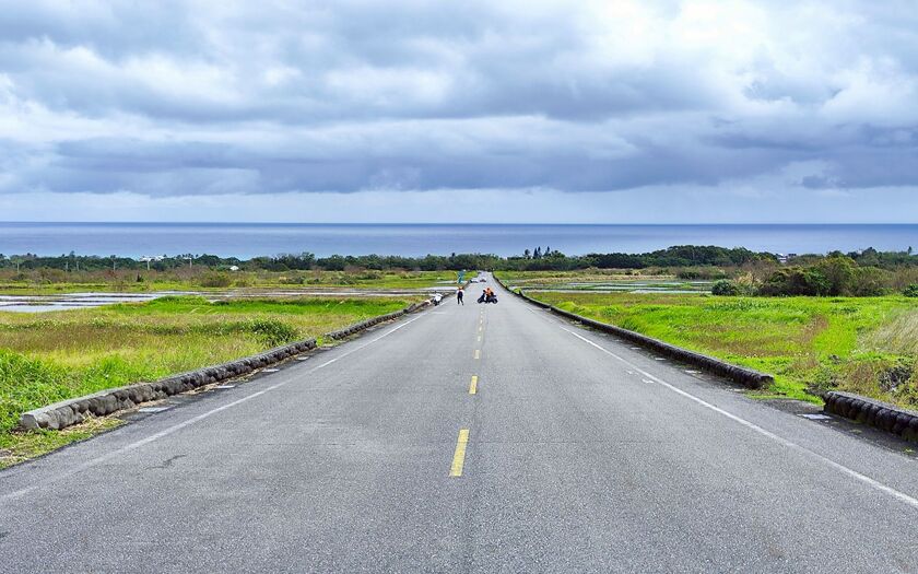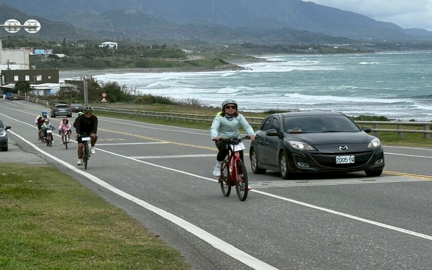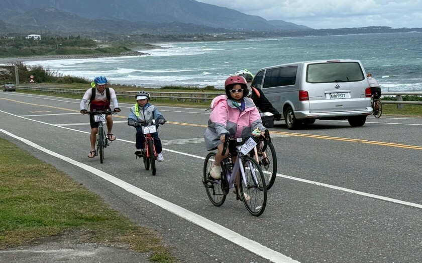 離開八仙洞,車隊騎上被暱稱為「東海岸伯朗大道」的 金剛大道(忠勇自行車道)。這是一條筆直通往太平洋的道路,視線盡頭是遼闊海景,腳下節奏穩定,孩子們在這裡學習專注、穩定與隊形配合。