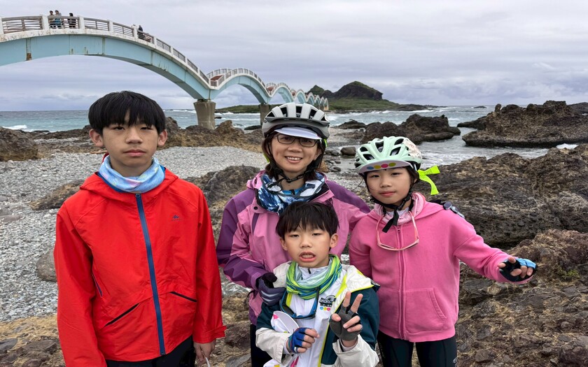 午後騎行來到 三仙台風景區。傳說呂洞賓、李鐵拐、何仙姑曾登臨此地,原本相連的岬角因長年海蝕而成為離岸島,珊瑚礁海岸在浪濤間顯露層次,孩子們在這裡,再一次感受到自然的力量與故事。