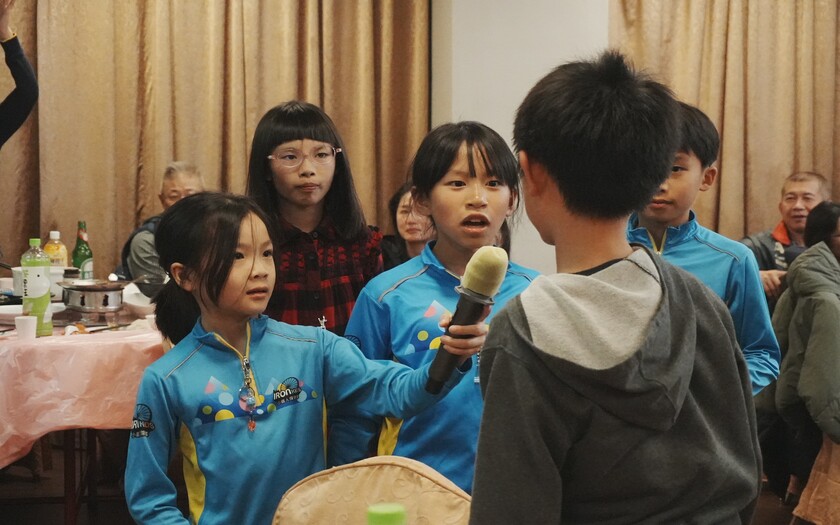 接著,小鐵人們分組帶來精彩的餘興節目:跳繩、花式雙手運球、跆拳道空手劈木、機智問答……笑聲與掌聲此起彼落。這一夜,不只是運動後的放鬆,更是自信與團隊精神的展現。