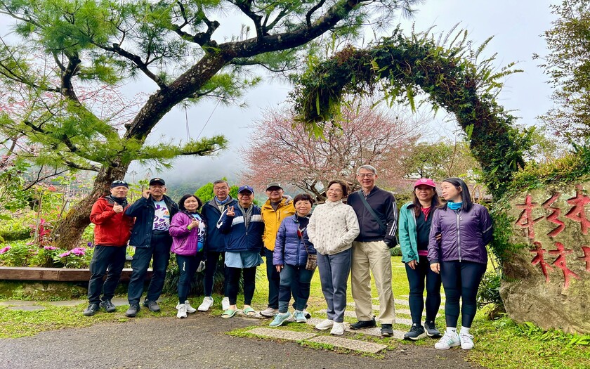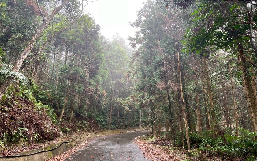 幸運的是,今天沒有遇到迷濛大霧。車道上只有些許落葉,夾雜著濕潤的霧水,雖略顯溼滑,但尚在可控範圍內。大家放慢節奏、彼此提醒,小心通過,一路順利來到五指山登山口——五指山觀音寺。
