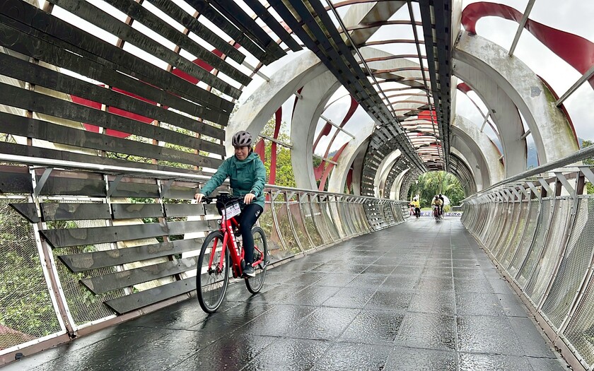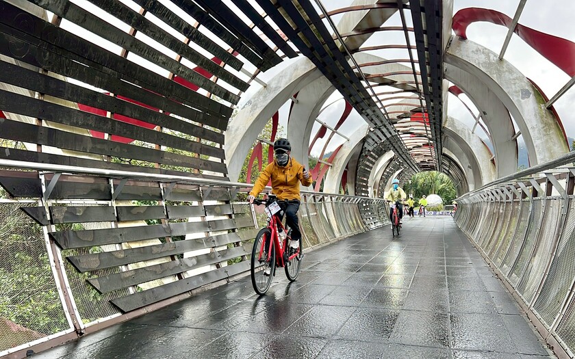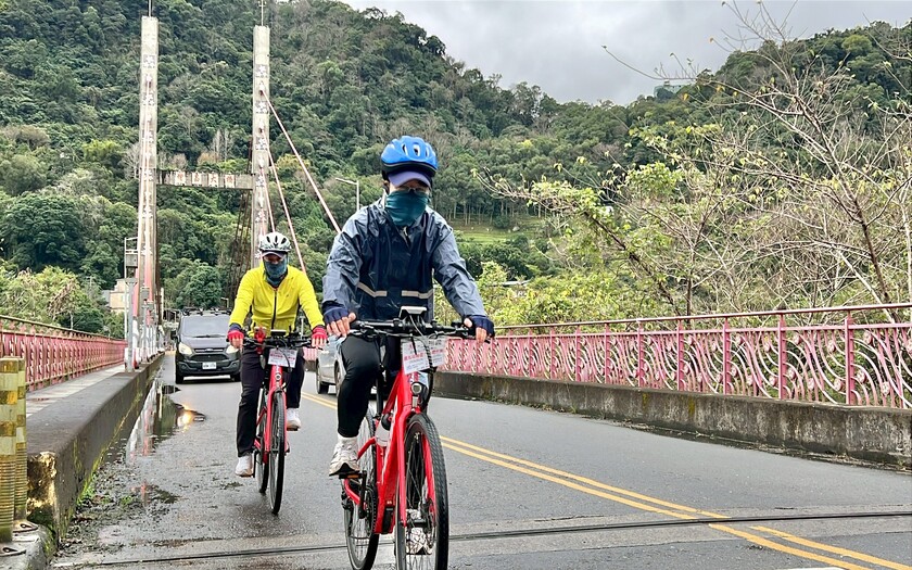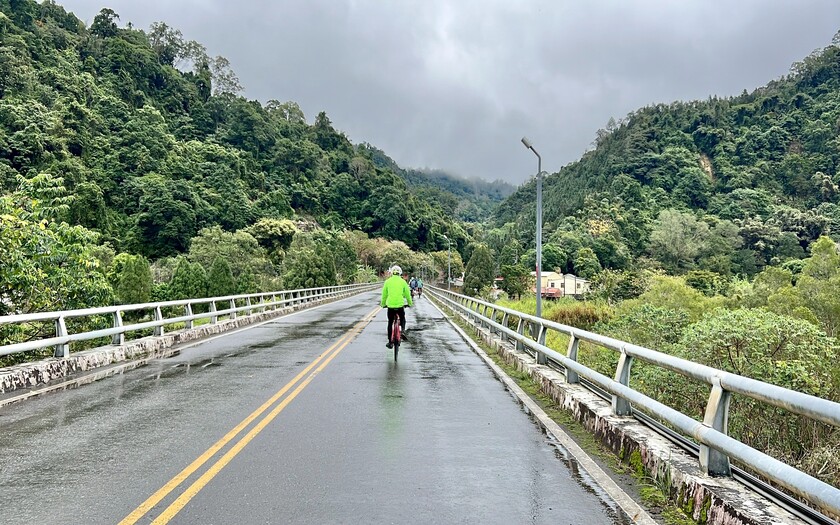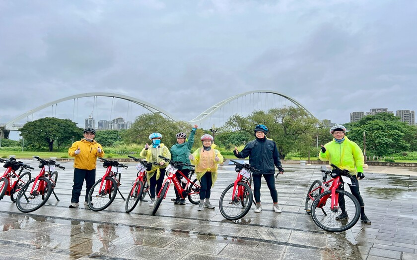 雨,終究沒有停。在濕潤的空氣中,車隊經過 三鶯龍窯橋,再騎進 大漢溪畔自行車專用道。熟悉的河岸線展現在眼前,最後,回到三天前出發的地方——新月橋。