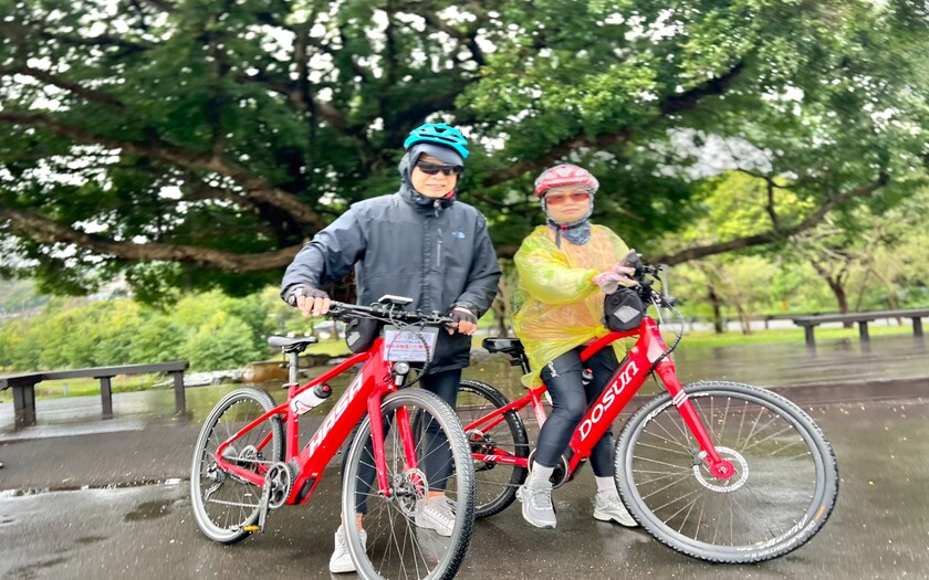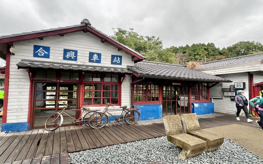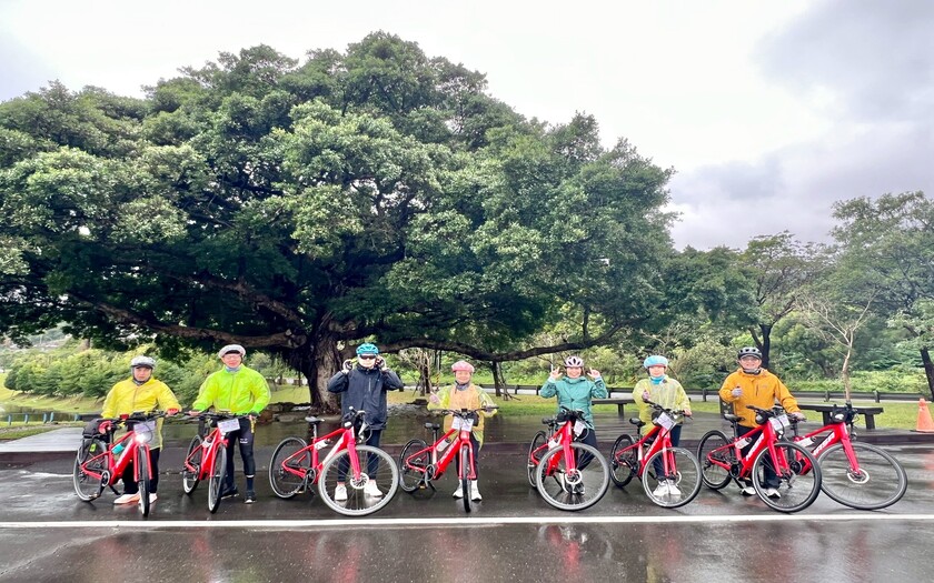 下山後短暫停留 合興車站,雨勢開始落下,還來不及聽完 1960 年 曾兆春 的愛情故事,便再度啟程。雨中騎行前往午餐地點 星園餐廳,用餐後雨勢稍歇,大家把握時間續騎往 大溪、三峽。