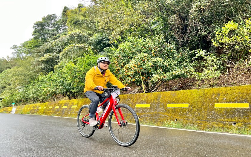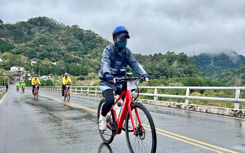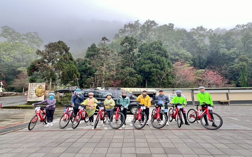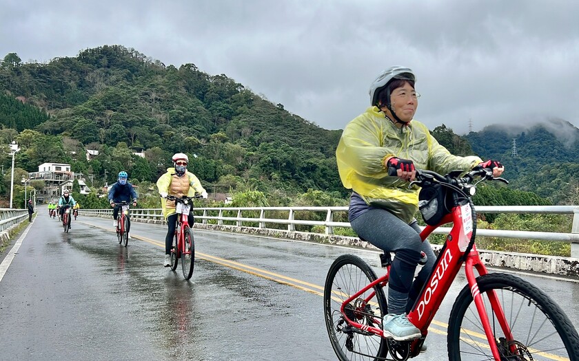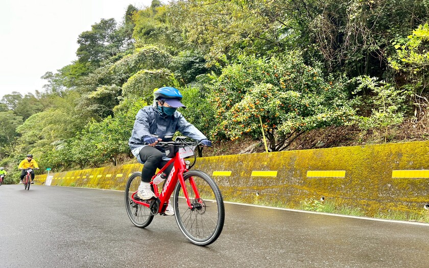 下一站,是今日真正的核心挑戰——大山北月。自頭份上坪溪谷的 瑞昌大橋 起算,沿竹 35 鄉道一路之字型向上,僅 4.7 公里,卻需爬升約 300 公尺。短、陡、毫不囉嗦。終點是由廢校活化而成的 大山北月園區,如今成為連結在地小農與社群的場域。這一段路,逼出了每個人心底的體能底線;在堅忍的意志(以及電輔助力)的支撐下,全員成功抵達。