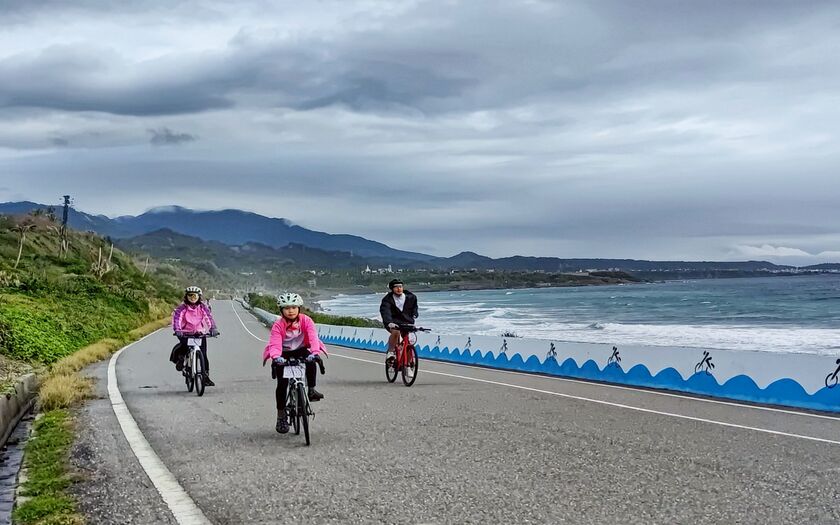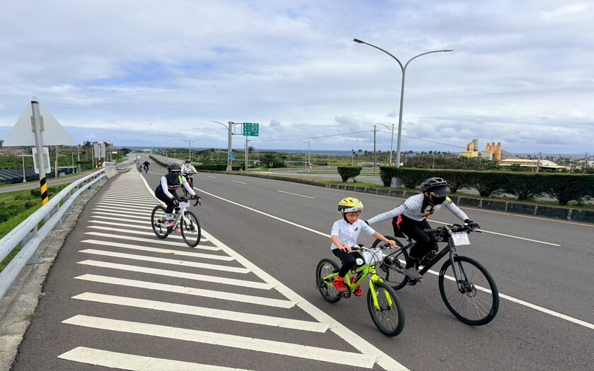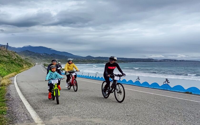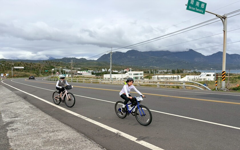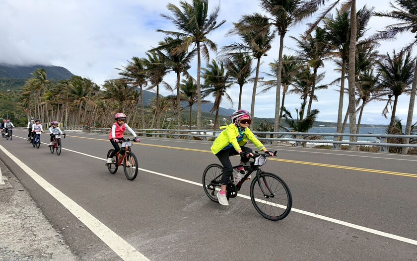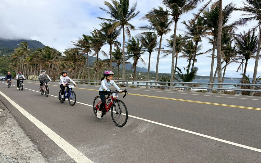 第一段騎上 叭嗡嗡海岸景觀公路,全長約 3.55 公里。踩踏之間,太平洋與海岸山脈一左一右相伴,藍得毫不保留。孩子們在欣賞風景,感受東海岸獨有的節奏。