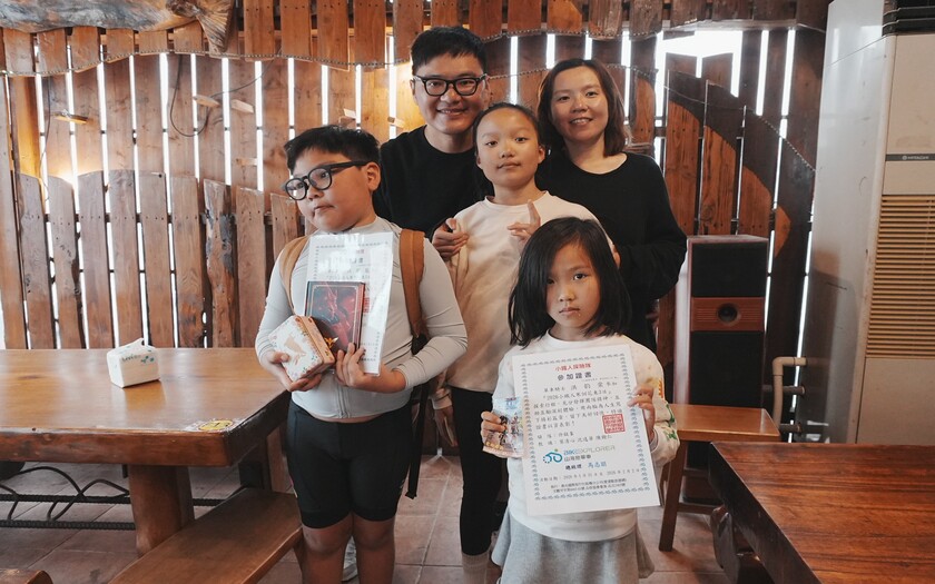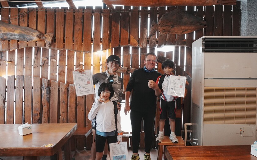 壓軸登場的,是頒發 「花東車訓 3 日參加證書」,以及小鐵人探險隊準備的 「花東騎・愛與勇氣貼紙」。貼紙上,是小鐵人的勇敢,以及爸媽陪伴在旁的身影——正是這三天旅程最真實的寫照。